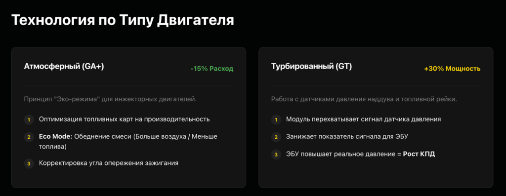 Важное уточнение: Тюнинг-модули GAN предназначены в первую очередь для увеличения мощности и улучшения динамики. Возможность снизить расход топлива — приятное дополнение, а не основная функция.