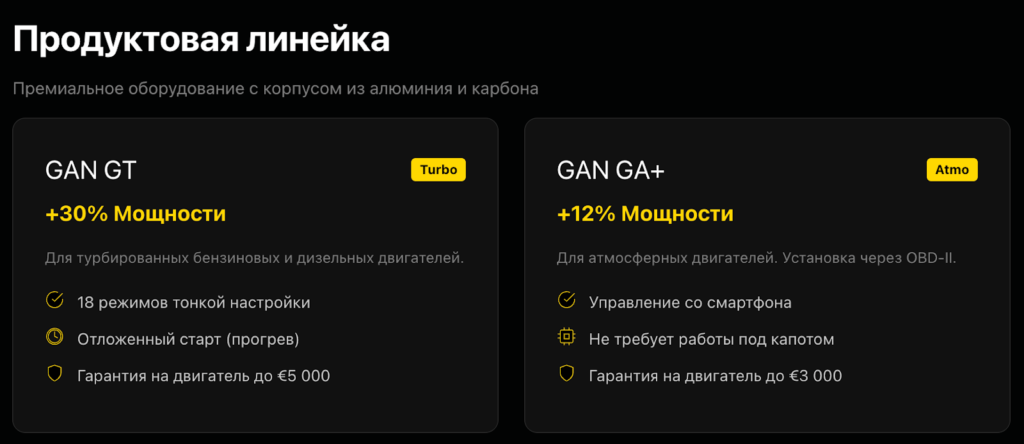 - GAN GA+ — до +12% мощности (атмо), 3 режима